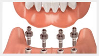 Dental implants are small titanium fixtures which are surgically placed in the jawbone. They replace the root of your missing tooth and provide an anchor for your dental crowns, bridges, and partial or full dentures. Implants can replace a single missing tooth, without involving healthy adjacent teeth. In many cases, implants may be placed to support a fixed bridge eliminating the need for a removable partial or full denture. Also implants minimize gum irritation and pain often associated with removable partials or conventional full dentures. Implant placement does require several steps over a period of time ranging from 3 1 12 months depending on your specific needs. Here are the steps required for implant therapy: 1. the implant is inserted into the jawbone and allowed to heal for several months 2. A post is attached to the implant and a temporary artificial tooth is used 3.A permanent tooth is attached after all healing is complete